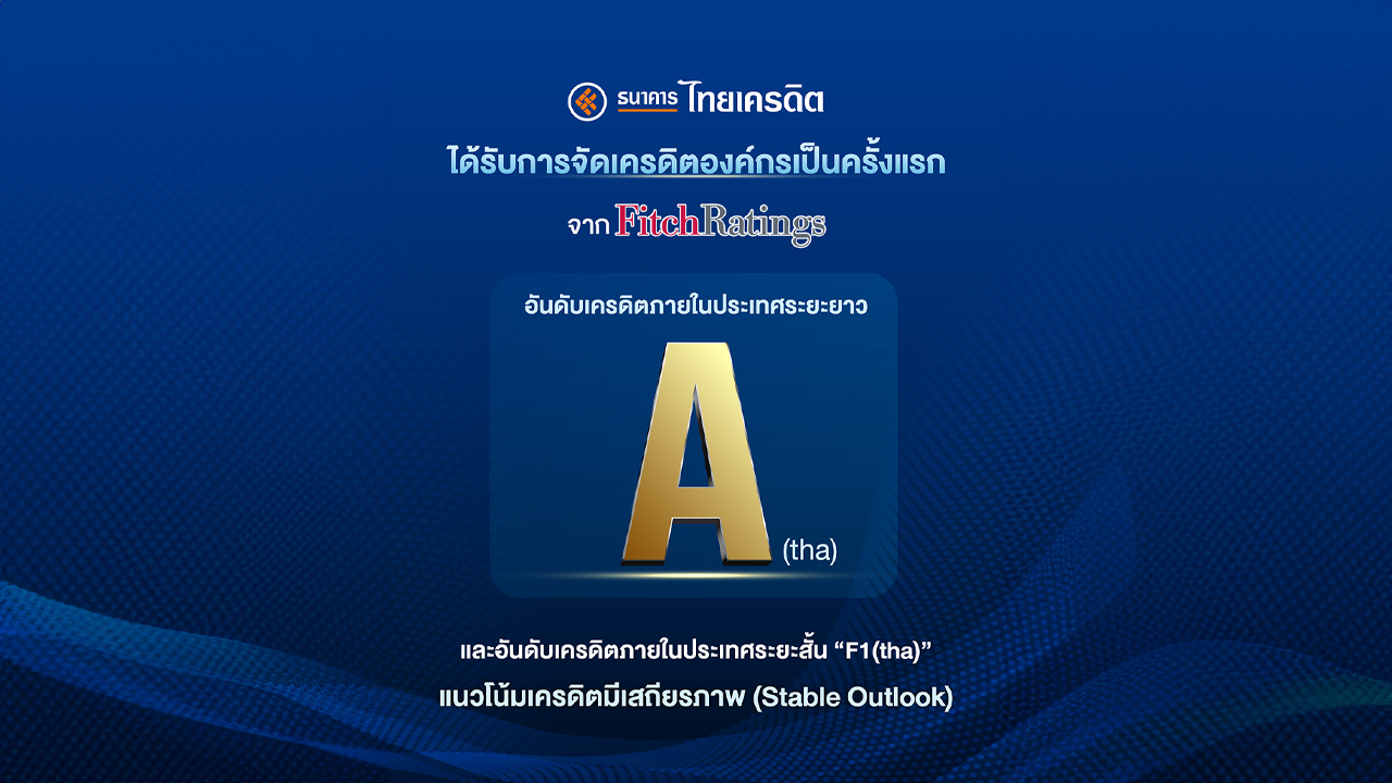 ธนาคารไทยเครดิต ได้รับการจัดอันดับเครดิต ‘A(tha)/F1(tha)’ จาก Fitch Ratings มีเสถียรภาพ ตอกย้ำธุรกิจแกร่ง