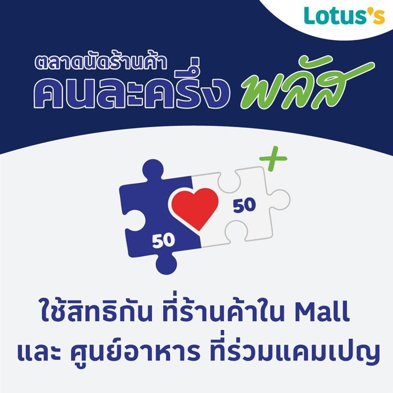 ยกเว้น ใช้คนละครึ่งพลัสไม่ได้ : ในส่วนของซูเปอร์มาร์เก็ตในโลตัสจะไม่สามารถใช้ได้
