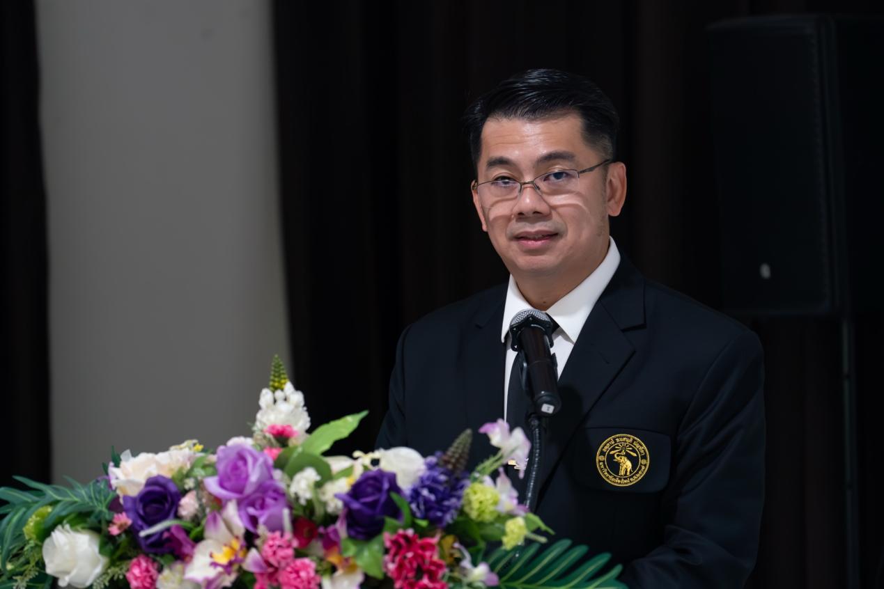 ผู้ช่วยศาสตราจารย์ ดร.พิริยะ เชิดสถิรกุล รองอธิการบดีมหาวิทยาลัยเชียงใหม่ ขึ้นกล่าวในงาน