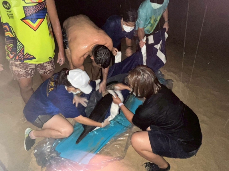ช่วยชีวิต "โลมากระโดด" เกยตื้นภูเก็ต มีอาการอ่อนแรง-ภาวะขาดน้ำ