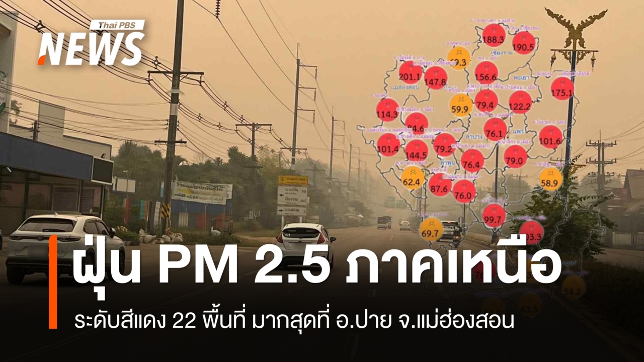ภาคเหนือ ฝุ่น PM 2.5 ระดับสีแดง 22 พื้นที่ มากสุด อ.ปาย จ.แม่ฮ่องสอน